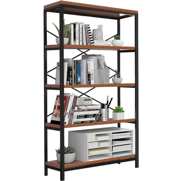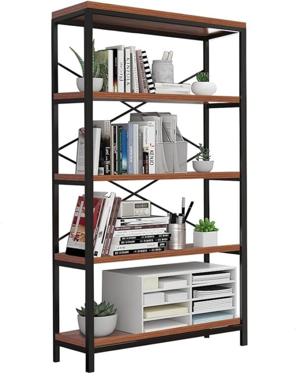With burnished rustic brown MDF wood board and black metal style finish, the 5 tier Industrial bookshelf adds a refined touch to any space. Open book shelves design maximizes open space feel. Constructed with durable MDF board and metal support frame, each panel can hold up to 34 kg. With a size of approximately 146 cm H x 30 cm W x 80 cm L, it maximizes storage space. It can be used as a plant stand, bookcase, or storage organizer in living rooms, bedrooms, kitchens, or any room. Easy assembly with included accessories and instructions. We provide the best service before and after your purchase.