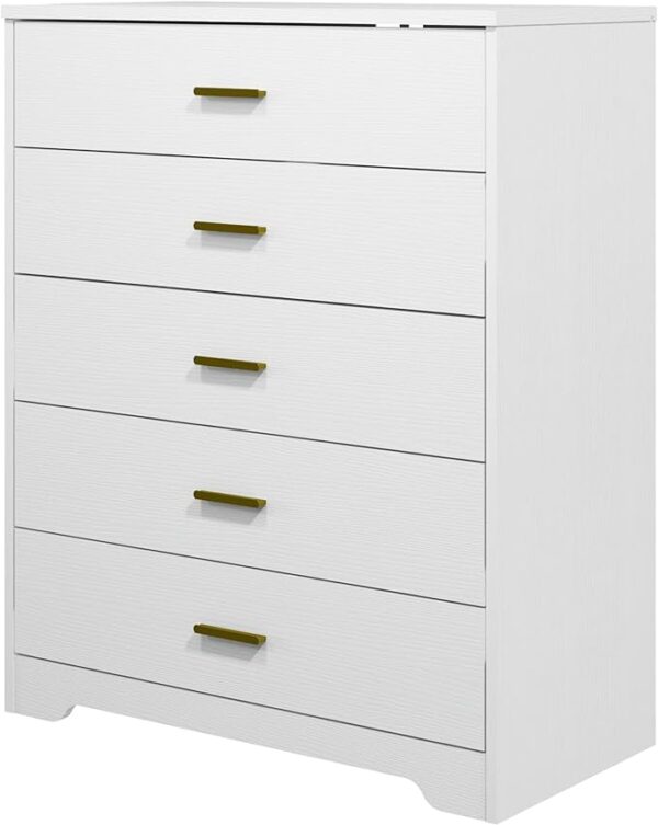 These chests of drawers blend seamlessly into any modern interior, boasting a chic inlaid handle design suitable for various storage needs throughout your home or office. Crafted from durable and eco-friendly MDF wood with a honeycomb structure, it ensures longevity while promoting a healthy environment. Its sturdy free-standing construction meets essential storage needs and adapts effortlessly to different spaces like the bathroom, living room, bedroom, or kitchen. With 4/5 drawers, it offers versatile organization options for cosmetics, toiletries, towels, and more, keeping your belongings neatly hidden yet easily accessible.